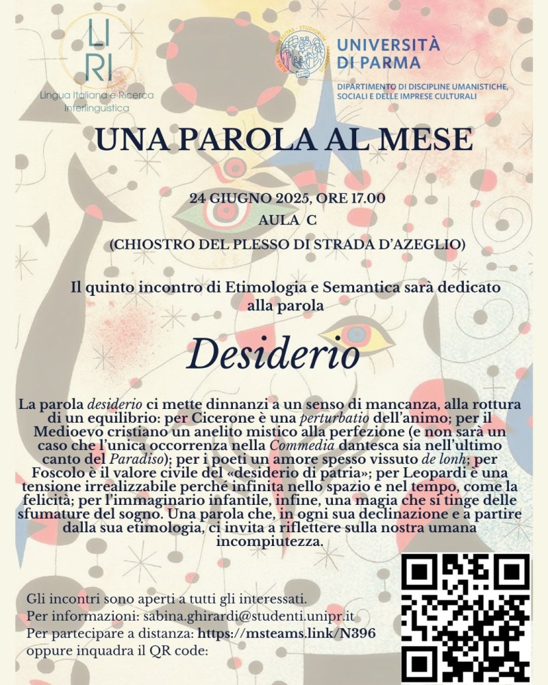 - 24/06/2025 - Quinto incontro di Etimologia e Semantica "Una parola al mese": Desiderio
